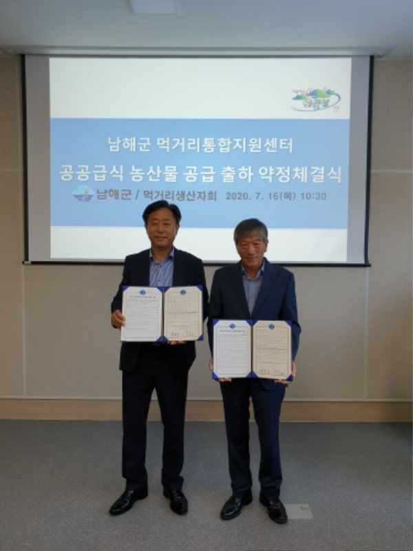 남해군은 16일 먹거리통합지원센터 회의실에서 남해군먹거리생산자회(회장 김민철)와 학교급식 농산물 공급을 위한 협약을 체결했다.