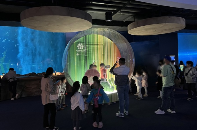 ‘엑스포 해양관’에서는 아쿠아리움 수족관을 활용해 만든 콘텐츠와 전시를 통해 바다와 습지 등 해양생태계가 흡수하는 탄소를 일컫는 블루카본(Blue Carbon)의 중요성을 알아보고, 해양오염과 기후변화의 심각성을 직접 체감할 수 있다.