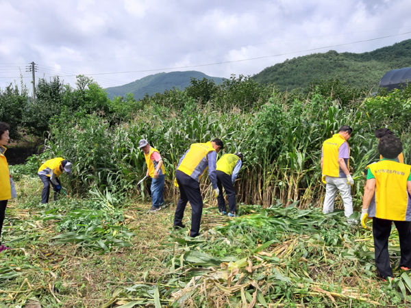 또 의령그라운드골프자원봉사클럽(코치 허상임, 김광옥, 강종규) 회원들은 지난 21일 의령읍 중리 소재 독거노인 가정을 찾아 일손 부족과 장마로 방치된 옥수수 밭에서 옥수수 대를 베고, 모아 태우는 봉사활동을 펼쳤다.