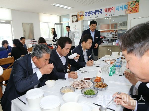합천군농업기술센터에서는 28일 센터 구내식당에서 양파가 함유된 즉석 쌀 떡국 및 쌀 떡볶이 시식회를 가졌다.