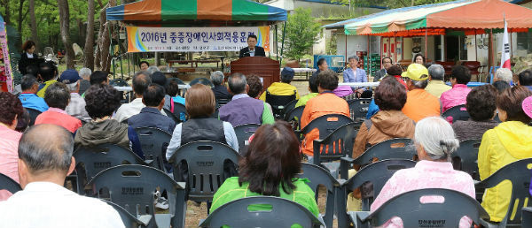 중증장애인 사회적응훈련 행사는 경남지체장애인협회 합천군지회(회장 김홍기)의 주관으로 평소 야외활동이 어려운 합천군 내 1~2급 중증장애인과 가족들에게 재활의지를 심어주고 장애인의 권익신장과 사회인식 개선을 위하여 매년 실시하고 있다.