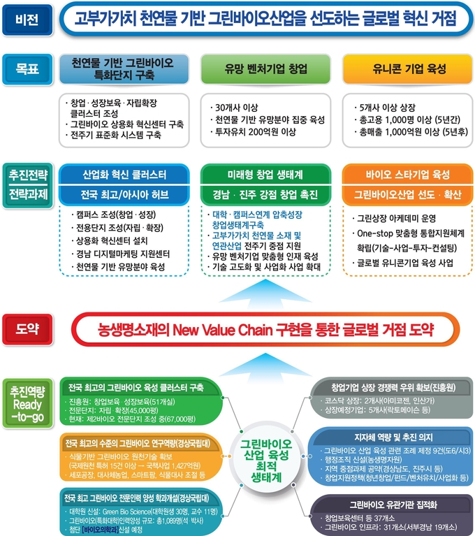 [경남도민뉴스] 경상남도(도지사 박완수)는 농식품 산업이 미래성장 산업으로 도약하기 위한 열쇠 가 될 「그린바이오 산업」육성 전략의 핵심사업인 ‘2023년 그린바이오 벤처 캠퍼스 조성사업’ 공모에 최종 선정되어 국비 161억 7천만 원 확보하였다고 밝혔다.