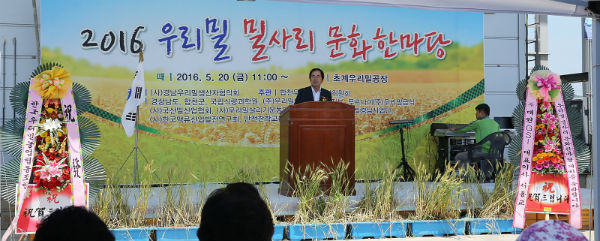 합천군(군수 하창환)은 20일 경상남도, 합천군, 국립식량과학원 등이 후원하여 초계면 합천우리밀산물처리장에서 (사)경남우리밀생산자위원회(회장 김석호)가 주관하고 합천우리밀생산자위원회가 주최하는 「2016년 우리밀 밀사리 문화한마당」이 소비자와 생산자 등 1,200여명이 참여한 가운데 성황리에 개최됐다.