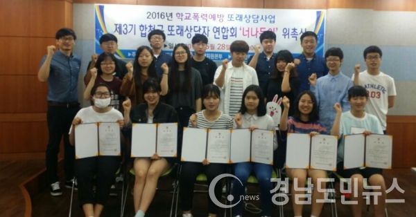 한편 합천군에 또래상담자로 활동하는 학생들은 2015년에 10개교 120명, 올해에는 12개교 150여명이 활동할 예정이다.