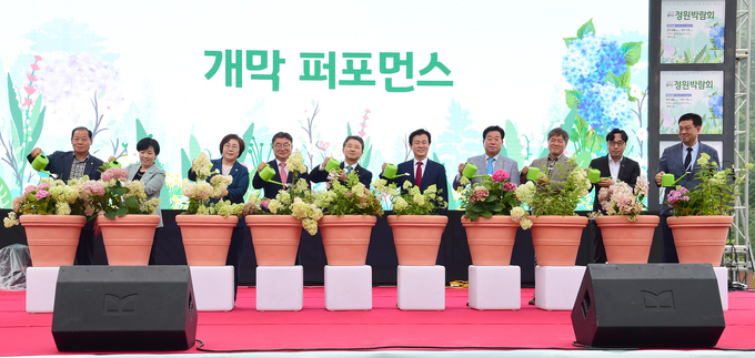 이날 개막식에는 조규일 진주시장과 남성현 산림청장, 권순기 경상국립대 총장, 김진부 경남도의회 의장, 도·시의원 등 내빈이 참석했으며, 개막식은 초청공연과 박람회 개최 경과보고 영상, 공로패 수여, 주요 내빈의 인사, 정원 화분 퍼포먼스, 정원박람회의 주제를 새긴 월량선경비 제막 순으로 진행됐다.