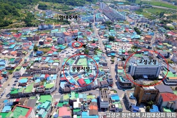 ‘고성군 고성읍 성내리 청년주택 사업’은 군청, 전통시장, 마을주차장에 인접한 입지적 장점을 중심으로 ‘공유텃밭, 공유마당 및 옥상정원’ 등을 조성해 청년들의 주거 편의성과 즐길거리를 늘려 청년들이 찾아오는 새로운 거점공간으로 만들 전망이다. 유휴공공시설을 새단장(리모델링)하고 주변 폐가 등을 정비하는 비용으로 총 4억 원(도비 2억, 군비 2억)의 예산을 투입할 계획이다.