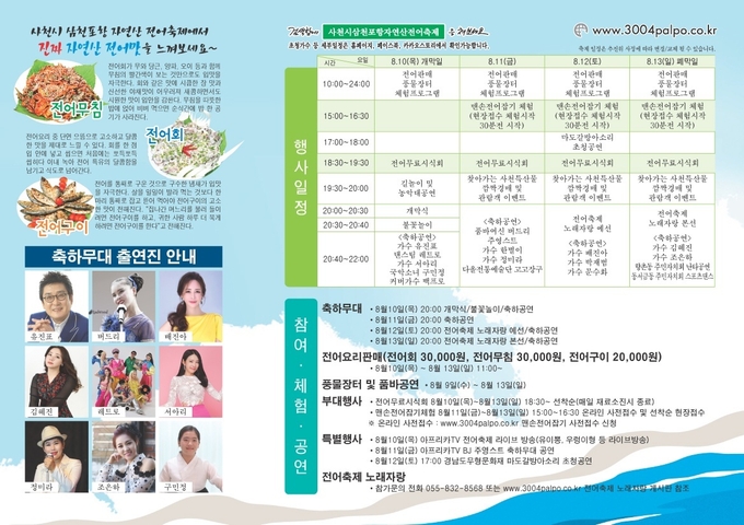 행사일정 관련 자세한 내용은 사천시 삼천포항 자연산 전어축제 추진위(055-832-8568)로 문의하면 된다.