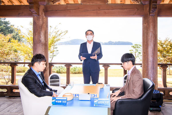 지난 22일 상주은모래비치 송림에서 열린 야외대국에서 신진서 9단이 박정환 9단에게 193수 만에 흑 불계승하며 1차전 세 번의 대국에서 모두 승리했다.