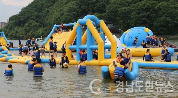 또한 초대형 에어 볼과 하나가 되는 ‘롤링워터볼’, 로프를 잡고 물속으로 점프하는 ‘로프스윙’, 투명한 에어 볼을 쓰고 온몸으로 게임을 즐기는 ‘버블팡’, 투명한 큰 공 안에 들어가 몸을 움직여 굴러가는 ‘저브볼’ 등 20여 개의 다양한 수상레포츠를 즐길 수 있다.