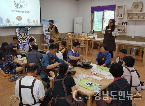 (합천/권연홍 기자) = 합천군(군수 하창환)은 지난 27일 도라지 체험교육장에서 산애삼영농조합조합법인 및 농업회사법인 드림팜, 사천시 농업기술센터 관계 공무원 대상으로 합천도라지 도라지 양갱체험 및 6차산업 추진 사례발표, 현장견학 시간을 가졌다.