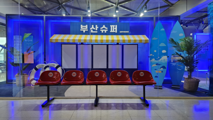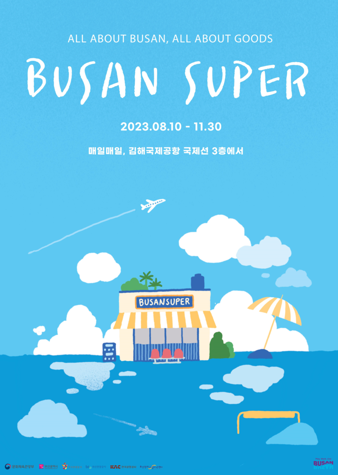 「부산슈퍼 부산점」은 8월 10일부터 8월 31일까지 약 3주간 김해국제공항 국제선 청사 3층에서 운영되며, 국내·외 관광객들에게 부산 관광기념품을 전시·판매하고 휴식 공간을 제공한다.
