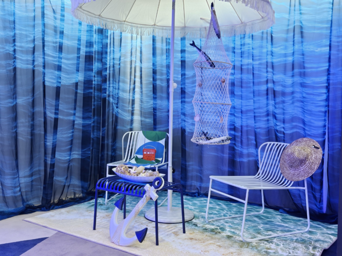 청량한 색감과 파도 패턴의 바닥을 연출하고, 구름 모양의 조명과 연기를 통해 구름 위에 떠 있는 듯한 기분을 만끽할 수 있도록 조성했다.