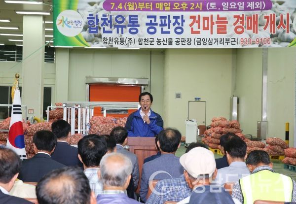 (합천/권연홍 기자) = 합천군(군수 하창환)과 합천유통(대표 장문철)에서는 4일 하창환 군수, 김성만 군의회의장 및 군의원, 류순철 도의원, 김인수NH농협은행합천군지부장, 지역농협장, 재배농가 등 100여명이 참석한 가운데 농산물 합천군 농산물 산지공판장 초매식을 갖고 본격적인 마늘 경매에 들어갔다.