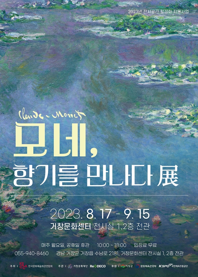 [경남도민뉴스] (재)거창문화재단(이사장 구인모 거창군수)은 8월 17일부터 9월 15일까지 거창문화센터 전시실에서 ‘모네, 향기를 만나다’ 기획전을 개최한다.