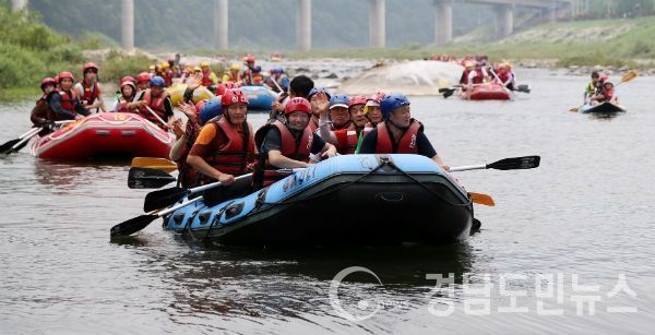장애인 재활능력과 도전정신을 함양하기 위한 ‘제15회 경남도 장애인 극기체험 래프팅대회’가 20일 경호강 일원에서 개최됐다. 이날 오전에는 산청군 실내체육관에서 기념식 행사를 치르고, 본격적인 대회는 경호강 래프팅 승선장으로 자리를 옮겨 진행됐다.