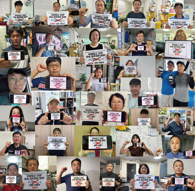 진보당 당원들이 쿠팡의 부당해고를 규탄하는 <쿠팡 와우회원 탈퇴> 선언에 동참하며 인증샷 실천을 진행했다.