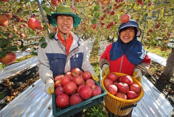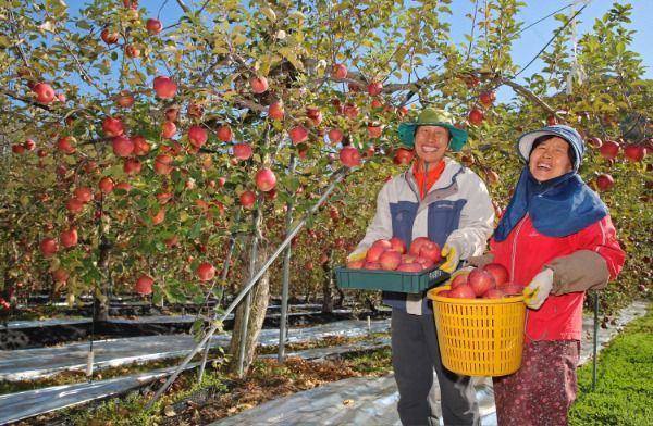 산청군 삼장면의 임병두(60), 이연옥(58) 부부 농가에서 사과 수확이 한창이다.