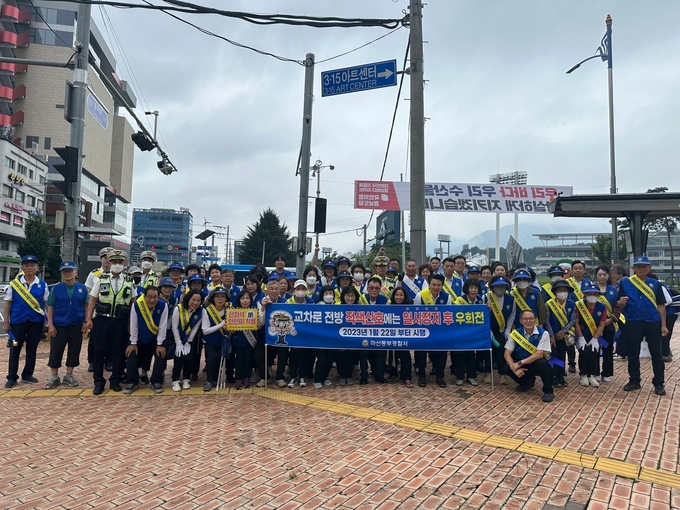 교차로 사거리에서 안전띠 착용, 난폭운전 금지 등 안전 운전을 할 수 있도록 홍보하는 한편 우회전 시 보행자 사고 예방을 위해 운전자 대상 교통지도 및 플래카드와 전단지 배부를 통해 우회전 일시정지 홍보활동을 펼쳤다.