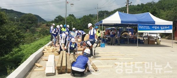 (합천/권연홍 기자) = 합천군(군수 하창환) 가회면 산두마을에서 ‘한국해비타트 2016년 희망의 집짓기사업’으로 한창 신축중인 건설 현장에 볼보건설기계코리아 임직원 100여명이 참여하여 구슬땀을 흘리고 있다.