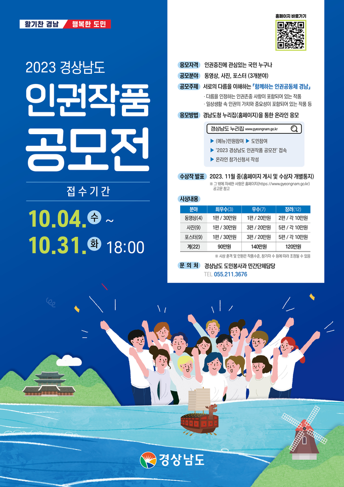 [경남도민뉴스] 경남도는 인권문화 참여·확산을 위한 ‘2023 경상남도 인권작품 공모전’을 개최한다고 4일 밝혔다.
