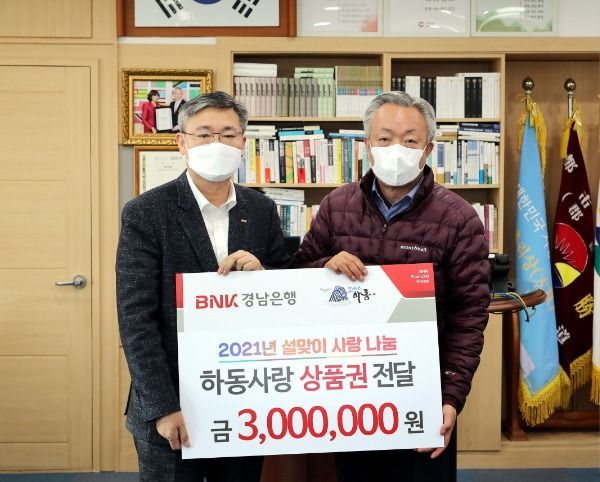 한편, 경남은행 하동지점은 지역의 어려운 이웃돕기와 지역경제 활성화를 위해 해마다 명절을 맞아 상품권을 기탁하는 등 다양한 사회공헌사업을 펼치고 있다.