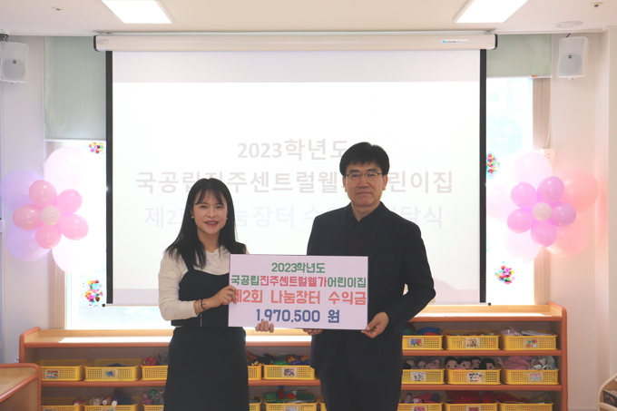 진주센트럴어린이집이 기부한 금액은 원아와 학부모 등이 참여하는 ‘나눔장터’를 운영해 마련된 수익금이며, 모인 수익금 전액을 어려운 이웃에게 따뜻한 희망을 전달하고자 이루어졌다.