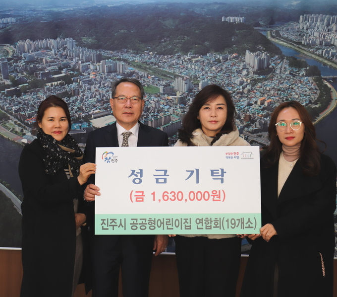 [경남도민뉴스] 진주시 공공형어린이집 연합회(회장 강경숙)는 16일 ‘콩깍지 나눔 놀이마당’에서 수익금으로 마련한 성금 163만 원을 진주시복지재단(이사장 이성갑)에 기탁했다고 밝혔다.