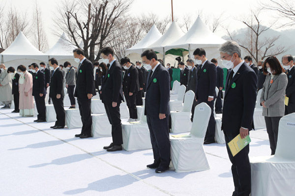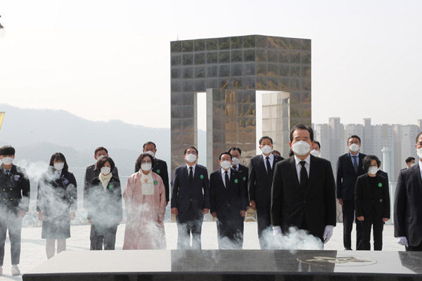 정세균 국무총리는 3‧15의거 제61주년을 맞아, 허성무 창원시장 등과 함께 기념식에 참석하고 민주묘지에 헌화와 참배를 했다.