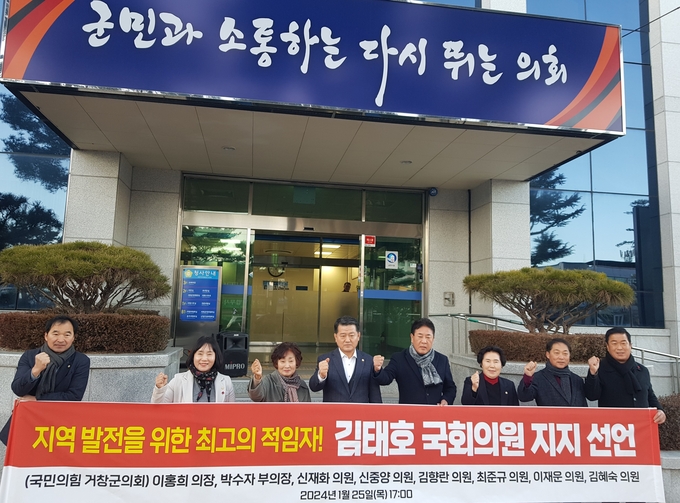 먼저 지난 25일 거창군의회 이홍희 의장을 비롯한 국민의힘 소속 의원 8명 전원이 참여했으며, 이들은 “지역 발전을 위해 많은 정부 예산을 가져왔고, 또 지역을 꿋꿋이 지키면서 고향에 힘 있는 변화를 만들어 낼 김태호 국회의원만이 국민의힘 적임자”라고 지지 이유를 밝혔다.
