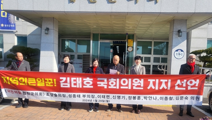 합천군의회는 29일, 조삼술 의장과 성종태, 이태련, 신명기, 정봉훈, 박안나, 이종철, 김문숙 의원 일동은 합천군의회 정문에서 “김태호 의원이 우리 지역발전을 위해 경륜과 정치적 역량을 갖춘 지도라로서 합천군의 획기적인 발전을 이끌 적임자리고 확신한다”며 릴레이 지지선언을 이어갔다