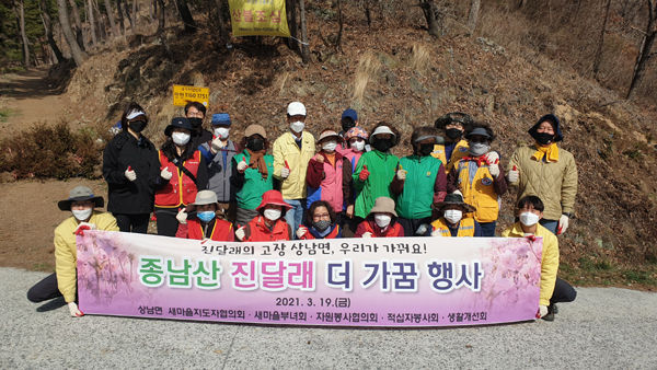 [경남도민뉴스] 상남면 행정복지센터(면장 박태식)는 19일과 20일, 2일간 종남산에 진달래 묘목 2,000주를 식재하며 ‘진달래 군락지 지역 명소화’ 추진에 박차를 가했다.
