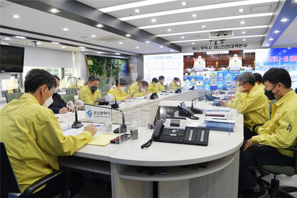 이병진 권한대행은 일요일인 오늘 오후 1시 30분 부산시청에서 코로나19 관련 대시민 긴급 브리핑을 가진 데 이어, 2시에는 부산시 전 실‧국장과 16개 구‧군 부단체장이 온‧오프라인으로 동시에 참석하는 확대 간부 대책회의를 열었다.