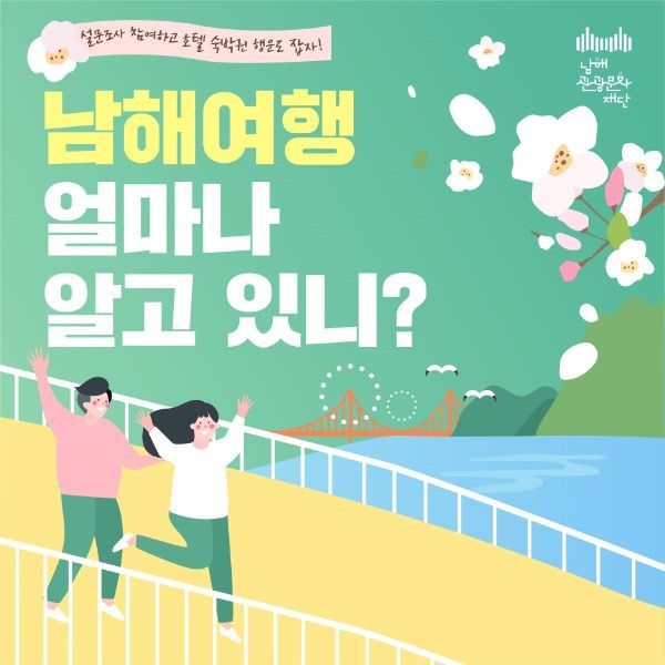 조영호 본부장은 “이번 설문조사를 통해 남해 여행에 대한 높은 관심과 기대를 확인할 수 있었다”며 “내년도 남해 방문의 해 사업을 준비함에 있어 국민의 목소리를 반영하여 성공적으로 추진하겠다”고 밝혔다.