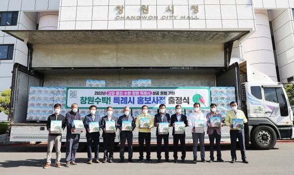 창원시(시장 허성무)는 6일 오전 시청 앞 광장에서 ‘창원수박 특례시 홍보사절 출정식’을 갖고, 수박 1,500여 통을 경기권 3개 도시로 실어보냈다.