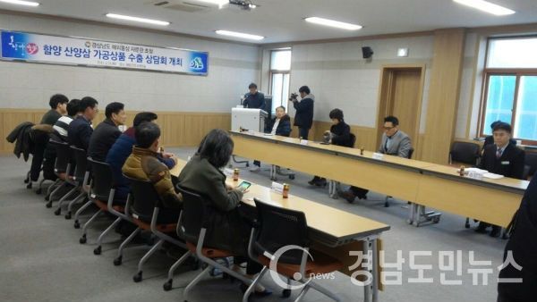 (함양/최병일) = 함양군은 본격적인 산얌삼 가공상품 해외 수출을 추진 하기 위해 21일 오전 군청 소회의실에서 경남해외통상자문관(주정수)을 초청하여 산양삼 가공업체 6개소 대표가 참석한 가운데 산양삼 수출 상담회를 개최 했다.