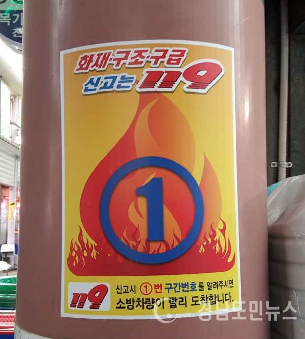 거창시장 재난발생 시 신속한 신고접수로 골든타임 확보하기 위한 자체 특수시책으로 소방차량 진입구간별 번호 스티커를 제작했다.