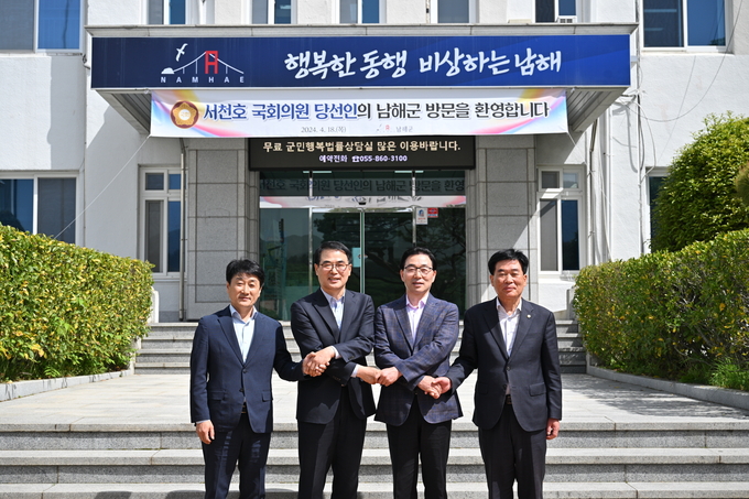 [경남도민뉴스] 남해군은 18일 서천호 22대 국회의원 당선인을 초청해 군정 주요 현안을 보고하고 국비 예산 확보 및 현안사업의 차질 없는 추진을 위한 상호 협력 방안을 논의했다.