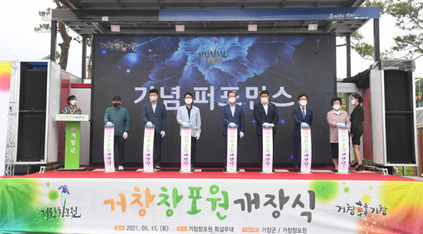 100만본 꽃창포, 아리미아 꽃 전시회 등과 함께 간소하게 문을 연 거창창포원은 ‘Y자형 출렁다리’와 함께 거창의 랜드마크로 우뚝 설 준비를 마치고 주목을 받고 있다.