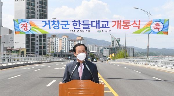 그 결과, 지난 5월 13일 거창읍의 남·북을 잇는 6번째 교량인 한들대교가 마침내 개통식을 갖고 그 위용을 당당하게 드러냈다.