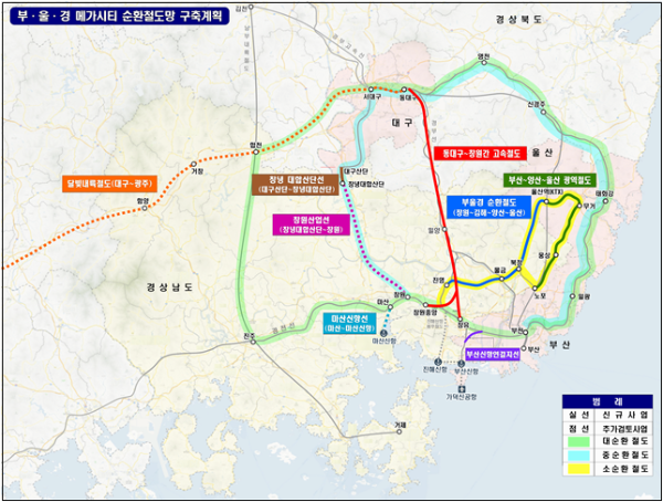 - 창원산업선, 마산신항선, 달빛내륙철도, 가덕도신공항과 연계한 동대구~창원 고속철도 신설 제4차 국가철도망구축계획 반영 등 3건이다.