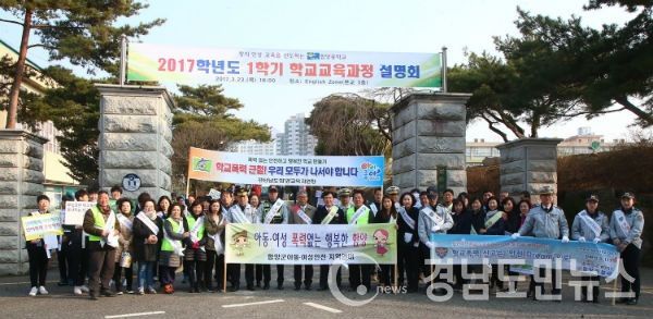 21일 함양군에 따르면 이날 오전 임창호 군수와 함양경찰서, 함양교육지원청, 청소년 육성회, 법무부사랑위원회 등 80여명이 함양중학교 정문에서 등교하는 학생을 대상으로 성폭력·성매매·가정폭력·성희롱 등 4대폭력 예방 홍보물을 나눠주며 캠페인을 벌였다.
