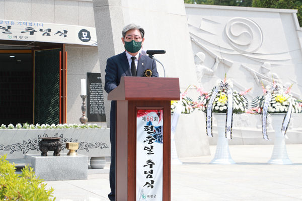 오태완 군수는 추념사를 통해 “우리는 순국선열과 호국영령들의 숭고한 희생 위에 자유와 번영의 꽃을 피웠다는 사실을 결코 잊어서는 안된다”고 강조하고 “국가유공자의 위훈을 기리고 유가족이 자부심을 가지고 살아갈 수 있도록 예우 증진을 위해 최선의 노력을 다 하겠다.”고 말했다.
