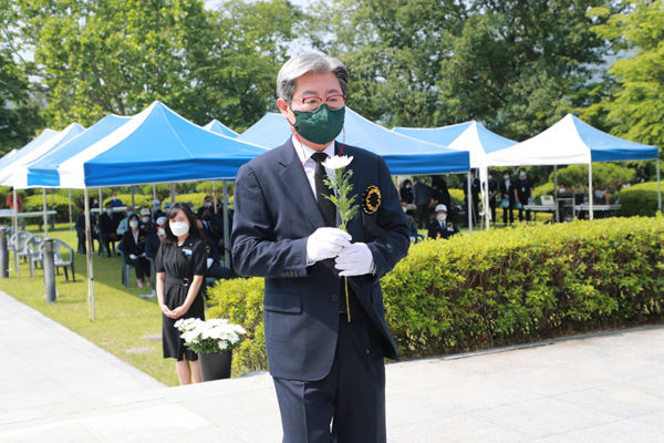 이날, 추념식은 전국 동시에 울리는 싸이렌에 맞춰 순국선열과 호국영령에 대한 묵념, 헌화와 분향, 추념사 순으로 진행하였으며, 코로나19 예방과 확산 방지를 위하여 참석 인원을 최소화하고 마스크 착용, 발열 체크, 거리두기 좌석배치 등 방역수칙을 철저히 준수하여 진행했다.