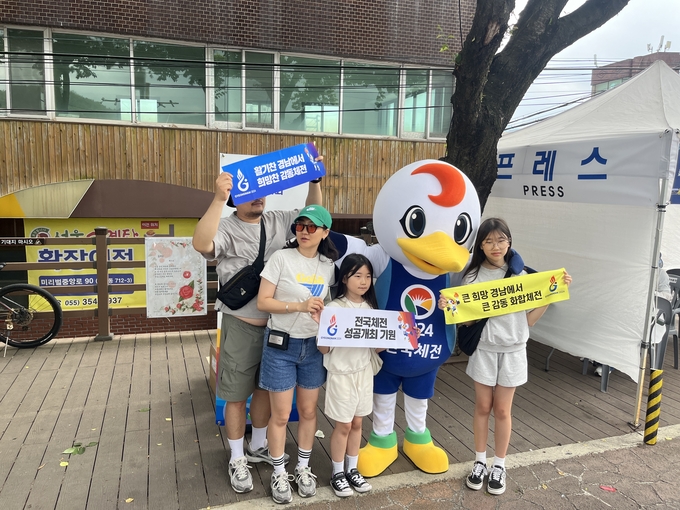 도 전국체전기획단은 축제 행사장 내 관광안내소에서 홍보 활동을 진행하였다. 체전 마스코트인 백동이 탈인형과 함께 기념사진을 찍은 관광객에게 부채, 칫솔세트 등 홍보물을 주는 이벤트를 통하여 관광객들에게 경남에서 개최하는 2024년 전국체전을 소개하였다.