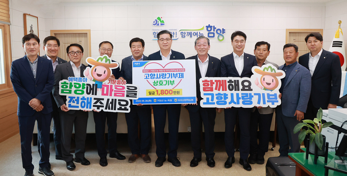 28일 오후 함양군청을 방문한 각 지자체 농·축협 관계자는 고향사랑기부제 상호기부 전달식을 통해 함양군·거창군 농협 간 1,250만원, 함양 지리산마천농협·하동 지리산청학농협 간 250만 원, 함양군·산청군 축협 300만 원을 각각 기탁하여 모두 1,800만 원을 상호기부했다.