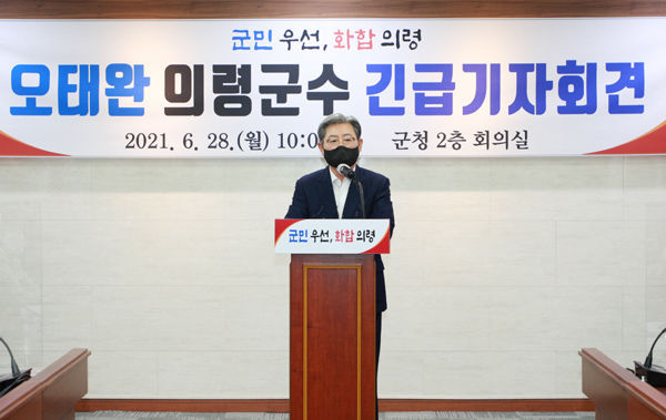 [경남도민뉴스] 오태완 의령군수는 06월 28일 오전 의령군청 회의장에서 먼저 불미스러운 일로 군민 여러분께 심려를 끼쳐 드려 송구하다는 말씀 올린다면서, “고소인을 강제추행을 한 사실이 결코 없다“고 했다.