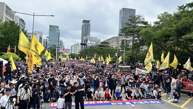 [경남도민뉴스] 전국한우협회는 3일 서울 여의도에서 한우농가 1만2000여명이 버스 300대, 소 반납차량 등을 동원하여 상경 집회를 열었다. 산청·함양·거창·합천에서도 버스 11대를 동원해 300여명이 상경했다.