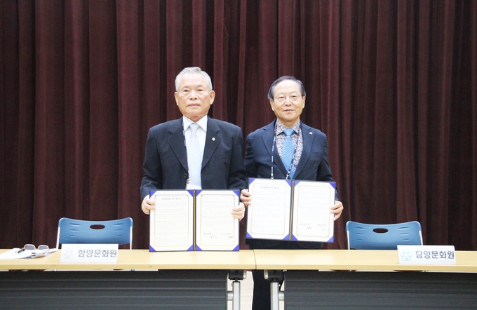 [경남도민뉴스] 함양문화원과 담양문화원이 11일 오전 함양문화원 공연장에서 문화예술 진흥을 위해 상호 협력을 위한 협약을 맺었다.
