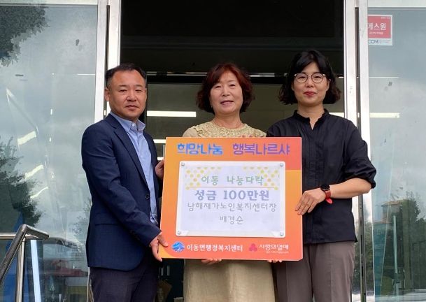 [경남도민뉴스] 남해재가노인복지센터 배경순 대표는 지난 15일 화전화폐 100만원을 이동면행정복지센터에 기탁했다.