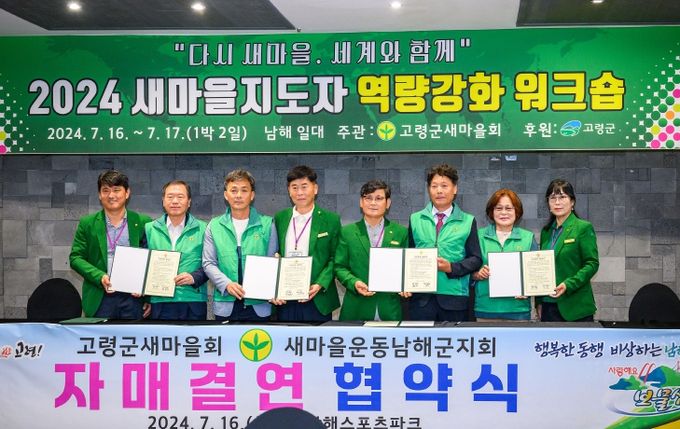 [경남도민뉴스] 새마을운동 남해군지회와 고령군 새마을회(회장 박중규)는 16일 스포츠파크호텔에서 상호 연대와 협력을 위해 자매결연 업무협약을 맺었다.